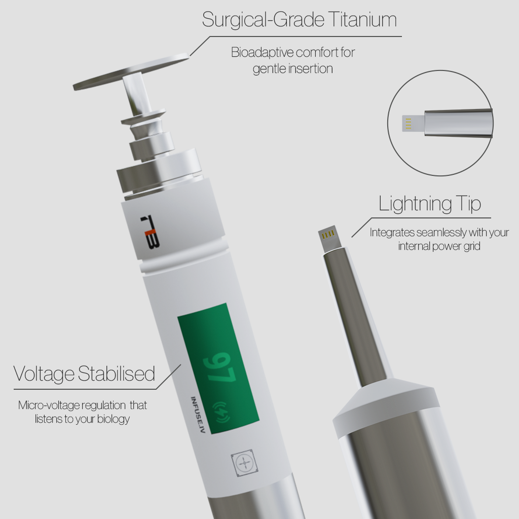 Deliver pure voltage through the bloodstream. Engineered for seamless biometric sync, INFUSE.IV ensures your system stays charged, calibrated, and compliant. Designed for efficiency — powered by you.